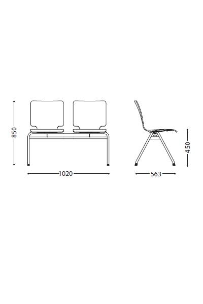 Bancheta Axo 401 are 2 locuri si este realizata din lemn stratificat sau laminat cu sezut tapitat cu material textil, microfibra sau piele ecologica.