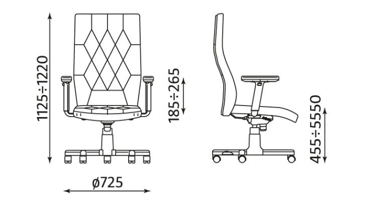 Baza scaunului directorial este in forma de stea cu roti antialunecare, din structura metalica cromata. Bratele adjustabile pe inaltime ale scaunului sunt din structura metalica cromata prevazute cu paduri din lemn.