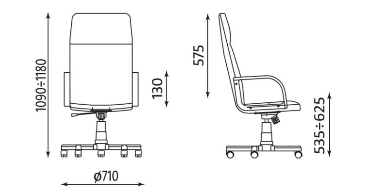 Baza scaunului directorial este in forma de stea cu roti antialunecare, din structura metalica in carcasa de plastic negru. Bratele fixe ale scaunului sunt din poliuretan negru.