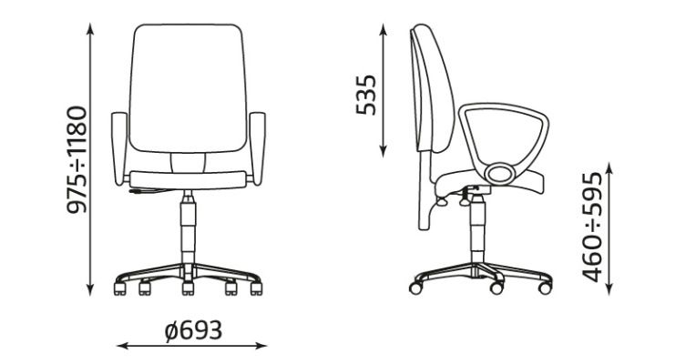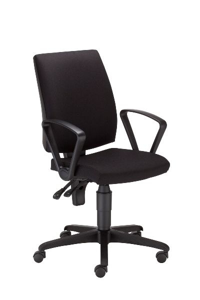 Baza scaunului este in forma de stea cu roti antialunecare, din structura metalica in carcasa de plastic negru. Bratele fixe ale scaunului sunt din polipropilena neagra.