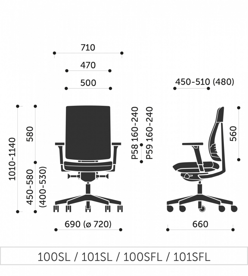 Dimensiuni scaun de Birou Xenon Net 101S: