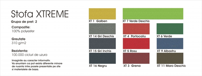 Exista posibilitatea de a alege culoarea diferita a sezutului si spatarului, insa sa fie din acelasi material, fara nici un cost suplimentar, trebuie sa fie specificat in comanda.