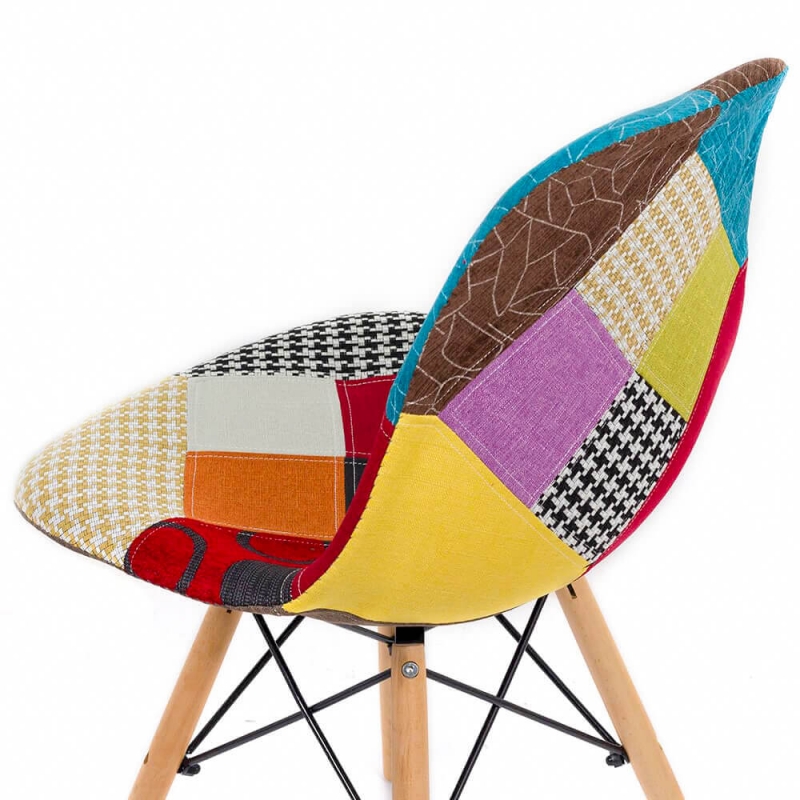Scaunele sunt confectionate dintr-o scoica de lemn, imbracata in burete si tapitata cu material textil - stofa colorata, iar sprijinul este realizat cu ajutorul picioarelor elegante de lemn de fag, ce rigidizate suplimentar de o serie de fire metalice incrucisate. Curbele sezutului contrasteaza cu liniile drepte de la picioare pentru a da un întreg echilibrat.