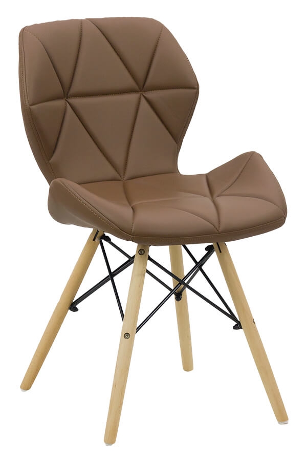 Scaunele sunt confectionate dintr-o scoica de lemn, imbracata in burete si tapitata cu piele ecologica, iar sprijinul este realizat cu ajutorul picioarelor elegante de lemn de fag, ce sunt rigidizate suplimentar de o serie de fire metalice incrucisate.